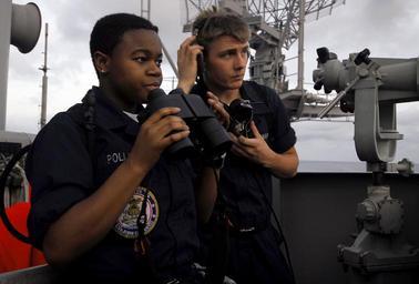 | Keywords: US Navy 090407-N-6538W-284 Seaman Nathaniel Anderson, right, from Spring Hill, Tenn., and Boatswain's Mate Seaman Recruit Courtney Pollard, from Fort Worth, Texas, use a sound powered phone to report surface contacts.jpg en PACIFIC OCEAN April 7 2009 Seaman Nathaniel Anderson right from Spring Hill Tenn and Boatswain's Mate Seaman Recruit Courtney Pollard from Fort Worth Texas use a sound powered phone to report surface contacts while standing port-forward lookout watch on the island structure of the aircraft carrier USS John C Stennis CVN 74 John C Stennis is on a scheduled six-month deployment to the western Pacific Ocean U S Navy photo by Mass Communication Specialist 3rd Class Walter M Wayman/Released 2009-04-07 090407-N-6538W-284 Navy http //www navy mil/view_image asp id 70519 U S Navy photo by Mass Communication Specialist 3rd Class Walter M Wayman PD-USGov-Military-Navy Aboard USS John C Stennis CVN-74 People of the United States Navy with sound-powered telephones |