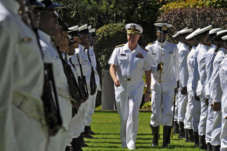 | Keywords: US Navy 090407-N-8273J-156 Chief of Naval Operations (CNO) Adm. Gary Roughead inspects the troops during a Guard of Honor ceremony while visiting Simon's Town Naval Base.jpg en SIMON'S TOWN South Africa April 7 2009 Chief of Naval Operations CNO Adm Gary Roughead inspects the troops during a Guard of Honor ceremony while visiting Simon's Town Naval Base As the first CNO to visit South Africa Roughead met with senior leadership to continue to build coalition partnerships and discuss training and maritime security cooperation in the region U S Navy photo by Mass Communication Specialist 1st Class Tiffini M Jones/Released 2009-04-07 090407-N-8273J-156 Navy http //www navy mil/view_image asp id 70391 U S Navy photo by Mass Communication Specialist 1st Class Tiffini M Jones PD-USGov-Military-Navy Images from US Navy location SIMON'S TOWN South Africa Gary Roughead in 2009 |