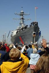 | Keywords: US Navy 090409-N-8907D-216 Family members welcome home Sailors from the guided-missile destroyer USS Mahan (DDG 72).jpg en NORFOLK Va April 9 2009 Family members welcome home Sailors from the guided-missile destroyer USS Mahan DDG 72 during the ship s homecoming at Naval Station Norfolk Mahan returned after a six-month deployment to the U S 5th Fleet area of responsibility as part of Combined Task Force 151 a multinational task force conducting counter-piracy operations to detect and deter piracy in and around the Gulf of Aden Arabian Sea Indian Ocean and Red Sea U S Navy photo by Mass Communication Specialist 3rd Class David Danals/Released 2009-04-09 090409-N-8907D-216 Navy http //www navy mil/view_image asp id 70443 U S Navy photo by Mass Communication Specialist 3rd Class David Danals PD-USGov-Military-Navy Naval Station Norfolk USS Mahan DDG-72 |