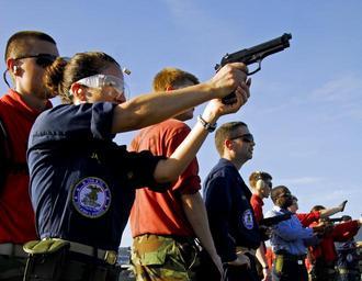 | Keywords: US Navy 090416-N-3707A-138 Lt. Yamile Jana, from San Juan, Puerto Rico, fires a 9mm pistol during a live-fire qualification exercise aboard the aircraft carrier USS John C. Stennis (CVN 74).jpg en PACIFIC OCEAN April 16 2009 Lt Yamile Jana from San Juan Puerto Rico fires a 9mm pistol during a live-fire qualification exercise aboard the aircraft carrier USS John C Stennis CVN 74 John C Stennis is on a scheduled six-month deployment to the western Pacific Ocean U S Navy photo by Mass Communication Seaman Apprentice Timothy Aguirre/Released 2009-04-16 090416-N-3707A-138 Navy http //www navy mil/view_image asp id 70639 U S Navy photo by Mass Communication Seaman Apprentice Timothy Aguirre PD-USGov-Military-Navy Aboard USS John C Stennis CVN-74 M9 pistol cartridge ejections Pistol shooting |