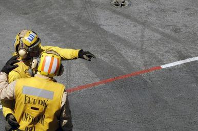 | Keywords: US Navy 090417-N-3659B-046 Lt. Ivan Borja, flight deck officer aboard the aircraft carrier USS Ronald Reagan (CVN 76), advises an aviation boatswain's mate (Handling) on ways to improve his technique for directing aircraft on t.jpg en PACIFIC OCEAN April 17 2009 Lt Ivan Borja flight deck officer aboard the aircraft carrier USS Ronald Reagan CVN 76 advises an aviation boatswain's mate Handling on ways to improve his technique for directing aircraft on the flight deck Borja was an aviation boatswain's mate Handling before accepting a commission as an officer Ronald Reagan is underway conducting Fleet Replacement Squadron Carrier Qualifications in the Pacific Ocean U S Navy photo by Mass Communication Specialist 2nd Class Joseph M Buliavac/Released 2009-04-17 090417-N-3659B-046 Navy http //www navy mil/view_image asp id 70687 U S Navy photo by Mass Communication Specialist 2nd Class Joseph M Buliavac PD-USGov-Military-Navy Aviation Boatswain's Mates Handlers Aboard USS Ronald Reagan CVN-76 |