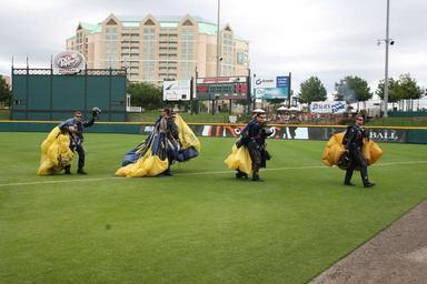 | Keywords: US Navy 090506-N-5366K-002 Members of the U.S. Navy Parachute Team the Leap Frogs wave to a cheering crowd after parachuting into Dr. Pepper Ball Park.jpg en FRISCO Texas May 6 2009 Members of the U S Navy Parachute Team the Leap Frogs wave to a cheering crowd after parachuting into Dr Pepper Ball Park The Leap Frogs are scheduled to visit various schools in the Dallas area during the week and plan to jump into the SEAL Fitness Challenge at Keller ISD Natatorium May 9 The Team is based in San Diego and performs freefall demonstrations across the United States to showcase Navy excellence and raise awareness about Naval Special Warfare U S Navy photo by Mass Communication Specialist 2nd Class Michelle Kapica/Released 2009-05-06 090506-N-5366K-002 Navy http //www navy mil/view_image asp id 71448 U S Navy photo by Mass Communication Specialist 2nd Class Michelle Kapica PD-USGov-Military-Navy Images from US Navy location FRISCO Texas United States Navy Parachute Team Baseball venues in Texas |