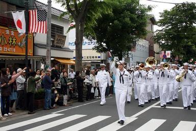 | Keywords: US Navy 090516-N-8418M-365 Musician 1st Class Jason Gromacki leads the marching band of the U.S. 7th Fleet Band during a parade at the 70th Shimoda Black Ship Festival.jpg en SHIMODA Japan May 16 2009 Musician 1st Class Jason Gromacki leads the marching band of the U S 7th Fleet Band during a parade at the 70th Shimoda Black Ship Festival The band and USS McCampbell DDG 85 visited Shimoda to support the festival which commemorated the 1854 landing of Commodore Matthew Perry and his crew at Shimoda and the subsequent opening of trade between Japan and the West U S Navy photo by Musician 2nd Class Kenneth McLaughlin/Released 2009-05-16 090516-N-8418M-365 Navy http //www navy mil/view_image asp id 71734 U S Navy photo by Musician 2nd Class Kenneth McLaughlin PD-USGov-Military-Navy Images from US Navy location SHIMODA Japan Aboard USS McCampbell DDG-85 |