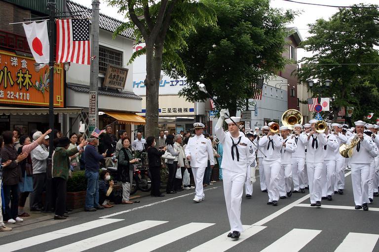 | Keywords: US Navy 090516-N-8418M-365 Musician 1st Class Jason Gromacki leads the marching band of the U.S. 7th Fleet Band during a parade at the 70th Shimoda Black Ship Festival.jpg  en SHIMODA Japan May 16 2009 Musician 1st Class Jason Gromacki leads the marching band of the U S 7th Fleet Band during a parade at the 70th Shimoda Black Ship Festival The band and USS McCampbell DDG 85 visited Shimoda to support the festival which commemorated the 1854 landing of Commodore Matthew Perry and his crew at Shimoda and the subsequent opening of trade between Japan and the West U S Navy photo by Musician 2nd Class Kenneth McLaughlin/Released 2009-05-16 090516-N-8418M-365 Navy http //www navy mil/view_image asp id 71734 U S Navy photo by Musician 2nd Class Kenneth McLaughlin PD-USGov-Military-Navy Images from US Navy location SHIMODA Japan Aboard USS McCampbell DDG-85  |