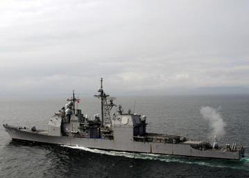 | Keywords: US Navy 090518-N-4275C-010 The guided-missile cruiser USS Philippine Sea (CG 58) fires a five-inch gun during a naval surface fire support certification.jpg en SCOTLAND May 18 2009 The guided-missile cruiser USS Philippine Sea CG 58 fires a five-inch gun during a naval surface fire support certification Phillipine Sea is taking part in Joint Warrior a two-week NATO exercise off the coast of Scotland U S Navy photo by Mass Communication Specialist 3rd Class SW Joel Carlson/Released 2009-05-18 090518-N-4275C-010 Navy http //www navy mil/view_image asp id 71845 U S Navy photo PD-USGov-Military-Navy Images from US Navy location SCOTLAND Joint Warrior 09-1 Firing naval artillery USS Philippine Sea CG-58 |