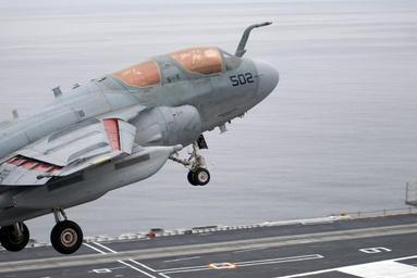 | Keywords: US Navy 090528-N-9132C-055 An EA-6B Prowler assigned to the Cougars of Tactical Electronic Warfare Squadron (VAQ) 139 is waved off just before landing aboard the aircraft carrier USS Ronald Reagan (CVN 76).jpg en SAN DIEGO May 28 2009 An EA-6B Prowler assigned to the Cougars of Tactical Electronic Warfare Squadron VAQ 139 is waved off just before landing aboard the aircraft carrier USS Ronald Reagan CVN 76 The primary mission of the Prowler is suppression of enemy air defenses in support of strike aircraft and ground troops by interrupting enemy electronic activity The aircraft also obtains tactical electronic intelligence Ronald Reagan is underway on a routine deployment to the western Pacific Ocean U S Navy photo by Mass Communication Specialist Seaman Apprentice Oliver Cole/Released 2009-05-28 090528-N-9132C-055 Navy http //www navy mil/view_image asp id 72105 U S Navy photo by Mass Communication Specialist Seaman Apprentice Oliver Cole PD-USGov-Military-Navy Grumman EA-6 Prowler aircraft carrier landings Aircraft landing on USS Ronald Reagan CVN-76 Electronic Attack Squadron 139 United States Navy |