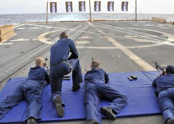 | Keywords: US Navy 090623-N-2638R-005 Sailors take aim at their targets during M16 service rifle qualifications aboard the guided-missile destroyer USS Mustin (DDG 89).jpg en PACIFIC OCEAN June 23 2009 Sailors take aim at their targets during M16 service rifle qualifications aboard the guided-missile destroyer USS Mustin DDG 89 Mustin is one of seven Arleigh Burke-class destroyers assigned to Destroyer Squadron DESRON 15 and operates from Yokosuka Japan U S Navy photo by Mass Communication Specialist 2nd Class Bryan Reckard/Released 2009-06-23 090623-N-2638R-005 Navy http //www navy mil/view_image asp id 73062 U S Navy photo by Mass Communication Specialist 2nd Class Bryan Reckard PD-USGov-Military-Navy Aboard USS Mustin DDG-89 |