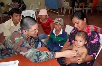 | Keywords: US Navy 090626-F-7885G-043 Air Force Maj. David Hsieh, embarked aboard the Military Sealift Command hospital ship USNS Comfort (T-AH 20), examines a young boy during a Continuing Promise 2009 medical community service project.jpg en LA UNION El Salvador June 26 2009 Air Force Maj David Hsieh embarked aboard the Military Sealift Command hospital ship USNS Comfort T-AH 20 examines a young boy during a Continuing Promise 2009 medical community service project at Loma Larga school Continuing Promise is a four-month humanitarian and civic assistance mission to seven countries in Latin America and the Caribbean Comfort is scheduled to be in El Salvador until July 2 U S Air Force photo by Airman 1st Class Danielle Grannan/Released 2009-06-26 090626-F-7885G-043 Navy http //www navy mil/view_image asp id 73124 U S Air Force photo by Airman 1st Class Danielle Grannan PD-USGov-Military-Navy Pasaquina El Salvador Healthcare in El Salvador USNS Comfort in El Salvador 2009 Images from US Navy location Pasaquina El Salvador |
