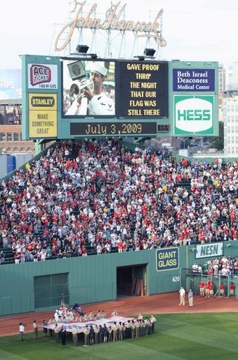 | Keywords: US Navy 090703-N-8110K-062 The Navy Operational Support Center-Quincy color guard presents colors while a group of boy scouts hold a large flag during the playing of the national anthem by U.S. Navy Band Northeast Jazz ensemble.jpg en BOSTON Mass July 3 2009 The Navy Operational Support Center-Quincy color guard presents colors while a group of boy scouts hold a large flag during the playing of the national anthem by U S Navy Band Northeast Jazz ensemble prior to a Boston Red Sox vs Seattle Mariners game The Fenway Park event took place during Boston Navy Week one of 21 Navy Weeks planned across America in 2009 Navy Weeks are designed to show Americans the investment they have made in their Navy and increase awareness in cities that do not have a significant Navy presence U S Navy photo by Chief Mass Communication Specialist Dave Kaylor/Released 2009-07-03 090703-N-8110K-062 Navy http //www navy mil/view_image asp id 73485 U S Navy photo by Chief Mass Communication Specialist Dave Kaylor The Scouts are from Boy Scout Troop 42 and Venturing Crew 42 from Quincy MA The flag is the National 9-11 flag rescued from Ground Zero and owned by the New York Says Thank You foundation The flag was originally repaired by survivors of the tornado in Greensburg Kansas and then again by the Scouts and leaders in Quincy themselves Source Ray Theberge Scoutmaster and Crew Advisor PD-USGov-Military-Navy Cornetists Military in Massachusetts Scouting in Massachusetts Photographs of flags of the United States ImageNote 1 1058 3487 52 52 2592 3912 2 The Scouts are from Boy Scout Troop 42 and Venturing Crew 42 from Quincy MA The flag is the National 9-11 flag rescued from Ground Zero and owned by the New York Says Thank You foundation The flag was originally repaired by survivors of the tornado in Greensburg Kansas and then again by the Scouts and leaders in Quincy themselves ImageNoteEnd 1 Boston Navy Week July 2009 in the United States 2009 in Boston Photographs taken on 2009-07-03 Boston Massachusetts |
