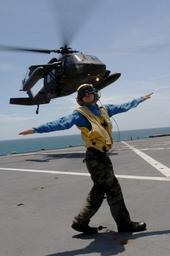 | Keywords: US Navy 090709-F-1333S-119 Aviation Boastswain's Mate 3rd Class Matthew Shaw directs a UH-60 Army Blackhawk helicopter.jpg en CORINTO Nicaragua July 9 2009 Aviation Boastswain's Mate 3rd Class Matthew Shaw directs a UH-60 Army Blackhawk helicopter based out of Managua Nicaragua during deck landing qualifications aboard the Military Sealift Command hospital ship USNS Comfort T-AH 20 near Corinto Nicaragua Comfort is participating in Continuing Promise 2009 a four-month humanitarian and civic assistance mission to Latin America and the Caribbean U S Air Force photo by Senior Airman Jessica Snow 2009-07-09 090709-F-1333S-119 Navy http //www navy mil/view_image asp id 73676 U S Navy photo PD-USGov-Military-Navy Corinto Nicaragua Images from US Navy location CORINTO Nicaragua Aboard USNS Comfort T-AH-20 UH-60 Black Hawk |