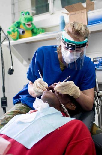 | Keywords: US Navy 090715-N-9689V-003 Australian Army Cpl. Diane Beningfield, dental technician, provides dental treatment to a local man during a Pacific Partnership 2009 medical civic action project at Niu'ui Hospital.jpg en LIFUKA Tonga July 15 2009 Australian Army Cpl Diane Beningfield dental technician provides dental treatment to a local man during a Pacific Partnership 2009 medical civic action project at Niu'ui Hospital This year Pacific Partnership will travel to Oceania including Kiribati Republic of the Marshall Islands Samoa Solomon Islands and Tonga The Military Sealift Command dry cargo/ammunition ship USNS Richard E Byrd T-AKE 4 serves as the enabling platform for Pacific Partnership U S Navy photo by Mass Communication Specialist 2nd Class Joshua Valcarcel/Released 2009-07-15 090715-N-9689V-003 Navy http //www navy mil/view_image asp id 73970 U S Navy photo by Mass Communication Specialist 2nd Class Joshua Valcarcel PD-USGov-Military-Navy USNS Richard E Byrd T-AKE-4 Australian Army Face shields |