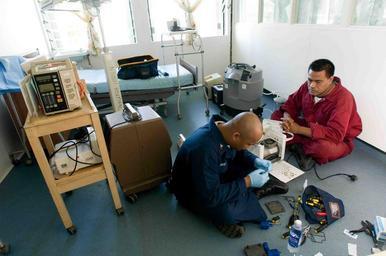 | Keywords: US Navy 090715-N-9689V-010 Hospital Corpsman 1st Class Jcid David, a biomedical repair technician, left, and Joe Manu, a dental mechanic, fix a surgical vacuum pump during a Pacific Partnership 2009 medical civic action project.jpg en LIFUKA Tonga July 15 2009 Hospital Corpsman 1st Class Jcid David a biomedical repair technician left and Joe Manu a dental mechanic fix a surgical vacuum pump during a Pacific Partnership 2009 medical civic action project at Niu'ui Hospital This year Pacific Partnership will travel to Oceania including Kiribati Republic of the Marshall Islands Samoa Solomon Islands and Tonga The Military Sealift Command dry cargo/ammunition ship USNS Richard E Byrd T-AKE 4 serves as the enabling platform for Pacific Partnership U S Navy photo by Mass Communication Specialist 2nd Class Joshua Valcarcel/Released 2009-07-15 090715-N-9689V-010 Navy http //www navy mil/view_image asp id 73974 U S Navy photo by Mass Communication Specialist 2nd Class Joshua Valcarcel PD-USGov-Military-Navy USNS Richard E Byrd T-AKE-4 Hospital Corpsman Repairing Vacuum pumps |