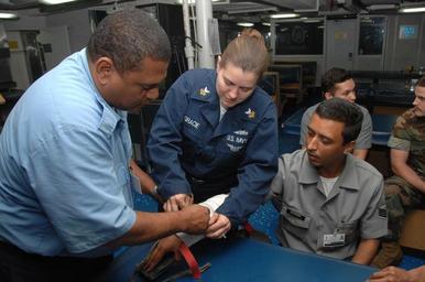 | Keywords: US Navy 090721-A-8397T-003 Hospital Corpsman 1st Class Elizabeth Gracie demonstrates how to apply a splint on a broken arm to Brazilian Navy sailors aboard the amphibious dock landing ship USS Oak Hill (LSD 51).jpg en RIO DE JANEIRO Brazil July 21 2009 Hospital Corpsman 1st Class Elizabeth Gracie demonstrates how to apply a splint on a broken arm to Brazilian Navy sailors aboard the amphibious dock landing ship USS Oak Hill LSD 51 Oak Hill is participating in Southern Partnership Station '09 Southern Partnership Station is a combined naval and amphibious operation with Oak Hill and maritime forces from Argentina Brazil Chile Peru and Uruguay Oak Hill is also supporting U S Marine Corps Forces South multinational amphibious exercise Southern Exchange 2009 U S Army photo by Pvt Cory Torres/Released 2009-07-21 090721-A-8397T-003 Navy http //www navy mil/view_image asp id 74253 U S Army photo by Pvt Cory Torres PD-USGov-Military-Navy Rio de Janeiro state USS Oak Hill LSD-51 Southern Partnership Station 2009 |