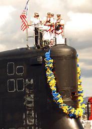 | Keywords: US Navy 090723-N-5476H-401 Crew members man the bridge as the Virginia-class attack submarine USS Hawaii (SSN 776) arrives at Pearl Harbor.jpg en PEARL HARBOR July 23 2009 Crew members man the bridge as the Virginia-class attack submarine USS Hawaii SSN 776 arrives at Pearl Harbor Hawaii is the third Virginia-class submarine constructed and the first submarine to bear the name of the Aloha state Measuring 377 feet long weighing 7 800 tons when submerged and with a crew of more than 130 Hawaii is capable of supporting a multitude of missions including anti-submarine warfare anti-surface ship warfare strike naval special warfare involving special operations forces intelligence surveillance reconnaissance irregular warfare and mine warfare U S Navy photo by Mass Communication Specialist 1st Class Michael Hight/Released 2009-07-23 090723-N-5476H-401 Navy http //www navy mil/view_image asp id 74441 U S Navy photo by Mass Communication Specialist 1st Class Michael Hight PD-USGov-Military-Navy Submarines at Pearl Harbor USS Hawaii SSN-776 Submarine sails |