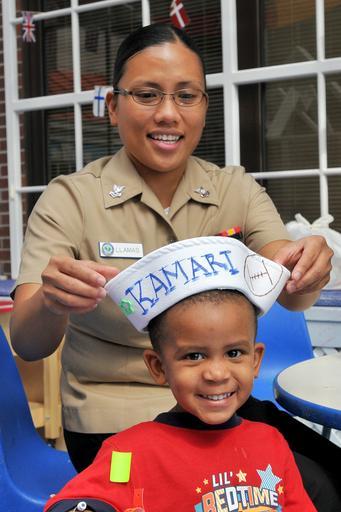 | Keywords: US Navy 090727-N-1783P-001 Hospital Corpsman 2nd Class Reneline Llamas, assigned to Naval Health Clinic Charleston, places a decorated white Sailor's hat on a 4-year-old patient.jpg  en CHARLESTON S C July 27 2009 Hospital Corpsman 2nd Class Reneline Llamas assigned to Naval Health Clinic Charleston places a decorated white Sailor's hat on a 4-year-old patient undergoing treatment at the Medical University of South Carolina Children's Hospital Llamas is working with Operation White Hat a Navy volunteer program to enhance the lives of patients at the hospital U S Navy photo by Machinist's Mate 3rd Class Juan Pinalez/Released 2009-07-27 090727-N-1783P-001 Navy http //www navy mil/view_image asp id 74574 U S Navy photo by Machinist's Mate 3rd Class Juan Pinalez PD-USGov-Military-Navy Images from US Navy location Charleston S C  |