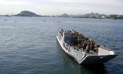 | Keywords: US Navy 090729-A-8397T-004 Marines from the U.S., Argentina, Brazil, Chile, Columbia, Peru, and Uruguay are transported aboard Landing Craft Unit (LCU) 1643 from the amphibious dock landing ship USS Oak Hill (LSD 51).jpg en RIO DE JANEIRO Brazil July 29 2009 Marines from the U S Argentina Brazil Chile Columbia Peru and Uruguay are transported aboard Landing Craft Unit LCU 1643 from the amphibious dock landing ship USS Oak Hill LSD 51 to Governor's Island in Rio De Janeiro Oak Hill is participating in Southern Partnership Station '09 Southern Partnership Station is a combined naval and amphibious operation with Oak Hill and maritime forces from Argentina Brazil Chile Peru and Uruguay Oak Hill is also supporting U S Marine Corps Forces South multinational amphibious exercise Southern Exchange 2009 U S Army photo by Pvt Cory Torres/Released 2009-07-29 090729-A-8397T-004 Navy http //www navy mil/view_image asp id 74592 U S Army photo by Pvt Cory Torres PD-USGov-Military-Navy Rio de Janeiro state USS Oak Hill LSD-51 Southern Partnership Station 2009 LCU 1643 ship 1969 |