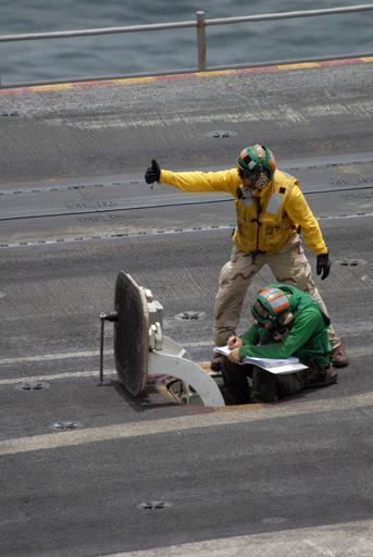 | Keywords: US Navy 090801-N-9132C-064 Aviation Boatswain's Mate (Equipment) 3rd Class James Deguise makes sure the catapult is ready to launch an aircraft off of the flight deck of the aircraft carrier USS Ronald Reagan (CVN 76).jpg en GULF OF OMAN Aug 1 2009 Aviation Boatswain's Mate Equipment 3rd Class James Deguise makes sure the catapult is ready to launch an aircraft off of the flight deck of the aircraft carrier USS Ronald Reagan CVN 76 while Lt Cmdr Steven Thomas the Shooter gives the go-a-head sign Ronald Reagan is deployed to the U S 5th Fleet area of responsibility U S Navy photo by Mass Communication Specialist Seaman Oliver Cole/Released 2009-08-01 090801-N-9132C-064 Navy http //www navy mil/view_image asp id 74931 U S Navy photo by Mass Communication Specialist Seaman Oliver Cole PD-USGov-Military-Navy Aviation Boatswain's Mates Catapults of USS Ronald Reagan CVN-76 |