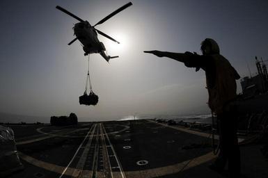 | Keywords: US Navy 090805-N-6814F-269 Seaman Jared Hanschu directs an SA-330 Puma helicopter to drop a pallet onto the flight deck of the guided-missile cruiser USS Anzio (CG 68).jpg en INDIAN OCEAN Aug 5 2009 Seaman Jared Hanschu directs an SA-330 Puma helicopter to drop a pallet onto the flight deck of the guided-missile cruiser USS Anzio CG 68 during a vertical replenishment with the Military Sealift Command combat stores ship USNS San Jose T-AFS 7 Anzio is the flagship for Combined Task Force 151 a multinational task force established to conduct counter-piracy operations off the coast of Somalia U S Navy photo by Mass Communication Specialist 2nd Class Brian K Fromal/Released 2009-08-05 090805-N-6814F-269 Navy http //www navy mil/view_image asp id 74911 U S Navy photo by Mass Communication Specialist 2nd Class Brian K Fromal PD-USGov-Military-Navy SA 330 Puma helihoisting cargo Aboard USS Anzio CG-68 |