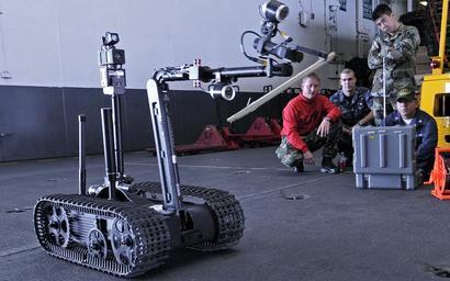 | Keywords: US Navy 090917-N-6003P-645 Machinist's Mate 2nd Class Gerardo Torres, from Los Angeles, Calif., remotely controls the Talon 4 Counter Improvised Explosive Device (IED) robot with guidance f.jpg en ATLANTIC OCEAN Sept 17 2009 Machinist's Mate 2nd Class Gerardo Torres from Los Angeles Calif remotely controls the Talon 4 Counter Improvised Explosive Device IED robot with guidance from Chief Explosive Ordnance Disposal Technician Joel Presson left from Mena Ark aboard the aircraft carrier USS Harry S Truman CVN 75 Harry S Truman is underway participating in Joint Task Force Exercise U S Navy photo by Mass Communication Specialist 3rd Class Kilho Park/Released 2009-09-17 090917-N-6003P-645 Navy http //www navy mil/view_image asp id 76429 U S Navy photo by Mass Communication Specialist 3rd Class Kilho Park PD-USGov-Military-Navy United States Navy Explosive Ordnance Disposal Aboard USS Harry S Truman CVN-75 EOD robots |