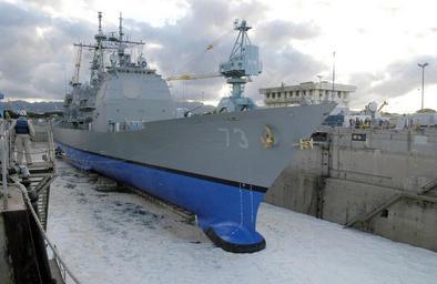 | Keywords: US Navy 090924-N-0676F-001 Docking Officer Lt. Cmdr. Michael Smith, far left, oversees the undocking of USS Port Royal (CG 73) from Dry Dock 4 at Pearl Harbor Naval Shipyard.jpg en PEARL HARBOR Hawaii Sept 24 2009 Docking Officer Lt Cmdr Michael Smith far left oversees the undocking of USS Port Royal CG 73 from Dry Dock 4 at Pearl Harbor Naval Shipyard Port Royal was in dry dock for about seven months to repair damage sustained when the ship ran aground in February 2009 The red-and-white checkered hardhat signifies Smith as the docking officer U S Navy photo by Marshall Fukuki/Released 2009-09-24 090924-N-0676F-001 Navy http //www navy mil/view_image asp id 76856 U S Navy photo by Marshall Fukuki PD-USGov-Military-Navy Pearl Harbor dry docks General views of USS Port Royal CG-73 |