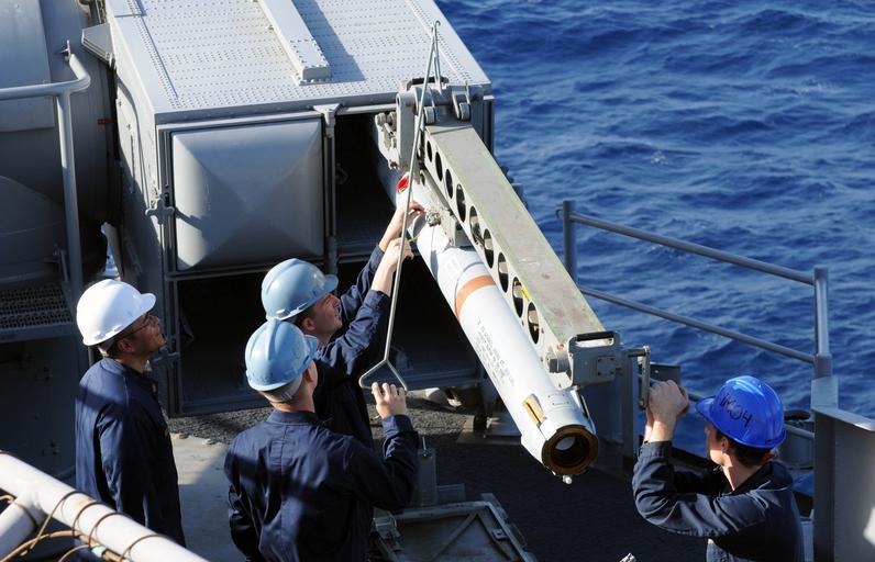 | Keywords: US Navy 091017-N-0890S-030 Sailors load a RIM-7M Sea Sparrow surface-to-air missile into a launcher aboard the multi-purpose amphibious assault ship USS Wasp (LHD 1).jpg en CARIBBEAN SEA Oct 17 2009 Sailors load a RIM-7M Sea Sparrow surface-to-air missile into a launcher aboard the multi-purpose amphibious assault ship USS Wasp LHD 1 Wasp is deployed supporting Southern Partnership Station-Amphibious with Destroyer Squadron 40 and the embarked Security Cooperation Marine Air-Ground Task Force U S Navy photo by Mass Communication Specialist 3rd Class David Smart/Released 2009-10-17 091017-N-0890S-030 Navy http //www navy mil/view_image asp id 77474 U S Navy photo by Mass Communication Specialist 3rd Class David Smart PD-USGov-Military-Navy Maintenance of RIM-7 Sea Sparrow Aboard USS Wasp LHD-1 Southern Partnership Station 2009 |