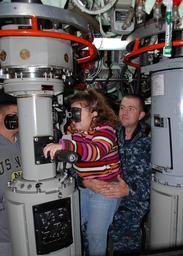 | Keywords: US Navy 091025-N-8750E-063 Electronics Technician 1st Class Scott Daniels, from Fulton, N.Y., helps a young girl look through a periscope during a tour of the Los Angeles-class attack submarine USS Annapolis (SSN 760).jpg en ANNAPOLIS Md Oct 25 2009 Electronics Technician 1st Class Scott Daniels from Fulton N Y helps a young girl look through a periscope during a tour of the Los Angeles-class attack submarine USS Annapolis SSN 760 Annapolis was anchored in the Chesapeake Bay near Annapolis Md and offered tours during a visit as part of the U S Naval Academy homecoming weekend U S Navy photo by Lt Patrick Evans/Released 2009-10-25 091025-N-8750E-063 Navy http //www navy mil/view_image asp id 77801 U S Navy photo by Lt Patrick Evans PD-USGov-Military-Navy United States Naval Academy USS Annapolis SSN-760 Submarine periscopes control room views |