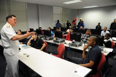 | Keywords: US Navy 091026-N-5208T-004 Texas Southern University aviation students listen as Rear Adm. W. Mark Skinner, Program Executive Officer-Tactical Aircraft Programs, discusses the future of naval aviation.jpg en HOUSTON Oct 26 2009 Texas Southern University aviation students listen as Rear Adm W Mark Skinner Program Executive Officer-Tactical Aircraft Programs discusses the future of naval aviation Skinner a native of Houston also participated in a flight simulator with the students in conjunction with Houston Navy Week Navy Weeks are designed to showcase the investment Americans have made in their Navy and increase awareness in metropolitan areas that do not have a significant Navy presence U S Navy photo by Mass Communication Specialist 1st Class Josh Treadwell/Released 2009-10-26 091026-N-5208T-004 Navy http //www navy mil/view_image asp id 77776 U S Navy photo by Mass Communication Specialist 1st Class Josh Treadwell PD-USGov-Military-Navy 2009 in Houston Schools in Houston People using computers in the 2000s Houston Navy Week |