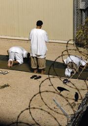 | Keywords: US Navy 091028-N-5169H-013 Detainees at Joint Task Force Guantanamo participate in morning prayer before sunrise inside Camp Delta.jpg en GUANTANAMO BAY Cuba Oct 28 2009 Detainees at Joint Task Force JTF Guantanamo participate in morning prayer before sunrise inside Camp Delta Detainees at the JTF are afforded the opportunity to pray five times each day and are provided prayer rugs and copies of the Quran JTF Guantanamo conducts safe humane legal and transparent care and custody of detainees including those convicted by military commission and those ordered released by a court U S Navy photo by Mass Communication Specialist 2nd Class Marcos T Hernandez/Released 2009-10-28 091028-N-5169H-013 Navy http //www navy mil/view_image asp id 78743 U S Navy photo by Mass Communication Specialist 2nd Class Marcos T Hernandez PD-USGov-Military-Navy Guantanamo Bay |