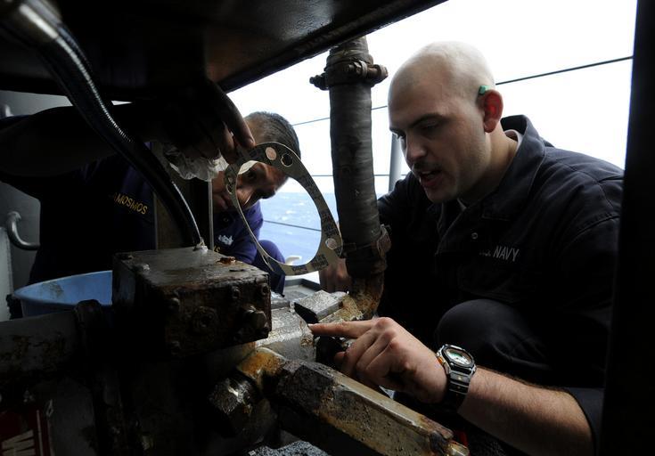 Keywords: US Navy 091104-N-7280V-772 Chief Engineman Manuel Jamosmos, left, and Engineman Fireman Kelly Cunningham replace a gasket on a slewing arm davit pump motor aboard the amphibious command ship USS Blue Ridge (LCC 19).jpg en PACIFIC OCEAN Nov 4 2009 Chief Engineman Manuel Jamosmos left and Engineman Fireman Kelly Cunningham replace a gasket on a slewing arm davit pump motor aboard the amphibious command ship USS Blue Ridge LCC 19 Blue Ridge is underway on a scheduled deployment U S Navy photo by Mass Communication Specialist 3rd Class Daniel Viramontes/Released 2009-11-04 091104-N-7280V-772 Navy http //www navy mil/view_image asp id 78067 U S Navy photo by Mass Communication Specialist 3rd Class Daniel Viramontes PD-USGov-Military-Navy Gaskets Pumps Engines Sailors from the United States Navy Corrosion Flange gaskets Aboard USS Blue Ridge LCC-19 Men at work |