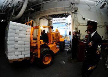 Keywords: US Navy 100114-N-7508R-011 Sailors aboard USS Bataan (LHD 5) off load supplies in the ship's hangar bay.jpg en NORFOLK Jan 14 2010 Sailors aboard the multipurpose amphibious assault ship USS Bataan LHD 5 off load supplies in the ship's hangar bay as Bataan prepares to depart Naval Station Norfolk to provide humanitarian assistance in the aftermath of a 7 0 magnitude earthquake near Port-au-Prince Haiti U S Navy photo by Mass Communication Specialist Julio N Rivera/Released 2010-01-14 100114-N-7508R-011 Navy http //www navy mil/view_image asp id 79883 U S Navy photo by Mass Communication Specialist Julio N Rivera PD-USGov-Military-Navy Aboard USS Bataan LHD-5