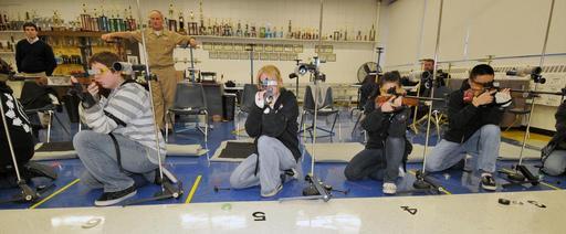 Keywords: US Navy 100121-N-8848T-640 Navy Junior ROTC cadets from Zion-Benton High School practice shooting at the school's air rifle range.jpg en ZION Ill Jan 23 2010 Navy Junior ROTC cadets from Zion-Benton High School practice shooting at the school's air rifle range In 2009 the team won first place at the Junior Olympics took first at the U S Army Nationals came in third at the U S Navy Nationals and is presently ranked No 1 heading into this year's Navy Nationals in March U S Navy photo by Scott A Thornbloom/Released 2010-01-23 100121-N-8848T-640 Navy http //www navy mil/view_image asp id 80994 U S Navy photo by Scott A Thornbloom PD-USGov-Military-Navy Images from US Navy location ZION Ill