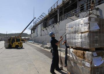 | Keywords: US Navy 100124-N-2000D-080 Sailors assigned to the guided-missile cruiser USS Normandy (CG 60) assess the feasibility of docking supply ships in a bay near the village of Petit Trou De Nippes, Haiti.jpg en GUANTANAMO BAY Cuba Jan 24 2010 Sailors assigned to the amphibious dock landing ship USS Carter Hall LSD 50 prepare pallets of humanitarian aid rations to be craned onto the ship Carter Hall is in Guantanamo Bay Cuba to load nearly 500 pallets of humanitarian aid and supplies to deliver to earthquake victims in Haiti Carter Hall is participating in Operation Unified Response a multi-national humanitarian and disaster relief operation following a 7 0 magnitude earthquake in Haiti Jan 12 U S Navy photo by Mass Communication Specialist 1st Class Monique Hilley/Released 2010-01-24 100124-N-2000D-080 Navy http //www navy mil/view_image asp id 80712 U S Navy photo by Mass Communication Specialist 1st Class Monique Hilley PD-USGov-Military-Navy Aboard USS Carter Hall LSD-50 Aboard USS Normandy CG-60 |