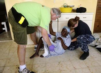 | Keywords: US Navy 100125-N-5345W-081 Hospital Corpsman 3rd Class Jennifer Atkinson, assigned to the amphibious dock landing ship USS Fort McHenry (LSD 43),.jpg en GRAND GOAVE Haiti Jan 25 2010 Hospital Corpsman 3rd Class Jennifer Atkinson assigned to the amphibious dock landing ship USS Fort McHenry LSD 43 helps Doug Pogue an emergency medical technician with Lifeline Christian Ministries transport an injured Haitian woman to a medical holding and recovery area after she received primary care at the Ministry's mission clinic in Grand Goave Haiti Fort McHenry along with the amphibious dock landing ships USS Gunston Hall LSD 44 and USS Carter Hall LSD 50 and the multi-purpose amphibious assault ship USS Bataan LHD 5 are participating in Operation Unified Response as the Bataan Amphibious Relief Mission by providing military support capabilities to civil authorities to help stabilize and improve the situation in Haiti in the wake of the 7 0 magnitude earthquake that hit the area on Jan 12 2010 U S Navy photo by Mass Communication Specialist 2nd Class Kristopher Wilson/Released 2010-01-25 100125-N-5345W-081 Navy http //www navy mil/view_image asp id 80779 U S Navy photo by Mass Communication Specialist 2nd Class Kristopher Wilson PD-USGov-Military-Navy Aboard USS Fort McHenry LSD-43 Hospital Corpsman Aboard USS Gunston Hall LSD-44 |