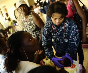 | Keywords: US Navy 100125-N-5345W-098 Hospital Corpsman 1st Class Vilma Bauer examines a Haitian infant at the Lifeline Christian Ministries Mission medical clinic in Grand Goave.jpg en GRAND GOAVE Haiti Jan 25 2010 Hospital Corpsman 1st Class Vilma Bauer assigned to the amphibious dock landing ship USS Fort McHenry LSD 43 examines a Haitian infant as her family looks on while seeking treatment at the Lifeline Christian Ministries Mission medical clinic in Grand Goave Fort McHenry the amphibious dock landing ships USS Gunston Hall LSD 44 and USS Carter Hall LSD 50 and the multi-purpose amphibious assault ship USS Bataan LHD 5 are participating in Operation Unified Response as the Bataan Amphibious Relief Mission providing military support capabilities to civil authorities to help stabilize and improve the situation in Haiti following the 7 0 magnitude earthquake on Jan 12 2010 U S Navy photo by Mass Communication Specialist 2nd Class Kristopher Wilson/Released 2010-01-25 100125-N-5345W-098 Navy http //www navy mil/view_image asp id 80861 U S Navy photo by Mass Communication Specialist 2nd Class Kristopher Wilson PD-USGov-Military-Navy Aboard USS Fort McHenry LSD-43 Aboard USS Gunston Hall LSD-44 |