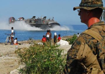 | Keywords: US Navy 100129-N-1092P-252 A Marine assigned to the 22nd Marine Expeditionary Force (22nd MEU) watches as a landing craft air cushion approaches the Grand-Goave, Haiti.jpg en GRAND GOAVE Haiti Jan 29 2010 A Marine assigned to the 22nd Marine Expeditionary Force 22nd MEU embarked aboard the amphibious assault ship USS Bataan LHD 5 watches as a landing craft air cushion approaches the Grand-Goave Haiti Bataan is supporting Operation Unified Response following a 7 0 magnitude earthquake that caused severe damage in Haiti on Jan 12 U S Navy photo by Mass Communication Specialist Seaman Stuart Phillips/Released 2010-01-29 100129-N-1092P-252 Navy http //www navy mil/view_image asp id 81108 U S Navy photo by Mass Communication Specialist Seaman Stuart Phillips PD-USGov-Military-Navy Aboard USS Bataan LHD-5 LCAC-71 ship 1994 |