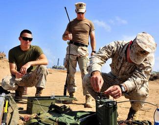 | Keywords: US Navy 100129-N-9187B-002 Marine Capt. Michael Rock connects a transmission wire to a high frequency antenna base as Cpl. Jacob Bartley and Electronics Technician 2nd Class Tim Faust look on.jpg en CAMP LEMONNIER Djiboui Jan 29 2010 Marine Capt Michael Rock connects a transmission wire to a high frequency antenna base as Cpl Jacob Bartley and Electronics Technician 2nd Class Tim Faust look on during a field expedient training exercise at Camp Lemonnier Djibouti U S Navy photo by Mass Communication Specialist 2nd Class Joshua Bruns/Released 2010-01-29 100129-N-9187B-002 Navy http //www navy mil/view_image asp id 81395 U S Navy photo by Mass Communication Specialist 2nd Class Joshua Bruns PD-USGov-Military-Navy Camp Lemonnier |