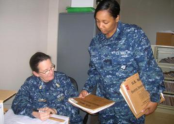 | Keywords: US Navy 100129-N-8374E-411 Chief Hull Technician Alicia L. Hutton, left, assigned to Reserve Unit USS Emory S. Land (AS-39), verifies field service records pulled for elimination.jpg en FORT WORTH Texas Jan 29 2010 Chief Hull Technician Alicia L Hutton left assigned to Reserve Unit USS Emory S Land AS-39 verifies field service records pulled for elimination by Seaman Lynette M Sessoms assigned to Navy Operational Support Center NOSC Support Unit Hutton and Sessoms are assisting the NOSC Fort Worth personnel department to purge nearly 1 000 reserve component field service records as the Navy transitions to electronic service records U S Navy photo by Chief Mass Communications Specialist Maria R Escamilla/Released 2010-01-29 100129-N-8374E-411 Navy http //www navy mil/view_image asp id 83536 U S Navy photo by Chief Mass Communications Specialist Maria R Escamilla PD-USGov-Military-Navy USS Emory S Land AS-39 |