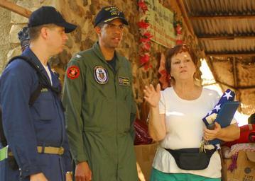 | Keywords: US Navy 100130-N-1092P-305 Capt. Sam Howard, commanding officer of the amphibious assault ship USS Bataan (LHD-5), speaks with Lifeline Christian Mission co-founder Gretchen DeVoe in Grand Goave, Haiti.jpg en Grand Goave Haiti Jan 30 2010 Capt Sam Howard commanding officer of the amphibious assault ship USS Bataan LHD-5 speaks with Lifeline Christian Mission co-founder Gretchen DeVoe in Grand Goave Haiti The DeVoes have been active in community outreach in this area for more than 25 years Sailors are providing medical care for Haitians at the clinic built by Lifeline Christian Ministries and are clearing debris and rubble Bataan is supporting Operation Unified Response following a 7 0 magnitude earthquake that caused severe damage in Haiti on Jan 12 U S Navy photo by Mass Communication Specialist Seaman Stuart Phillips/Released 2010-01-30 100130-N-1092P-305 Navy http //www navy mil/view_image asp id 81140 U S Navy photo by Mass Communication Specialist Seaman Stuart Phillips PD-USGov-Military-Navy Aboard USS Bataan LHD-5 |