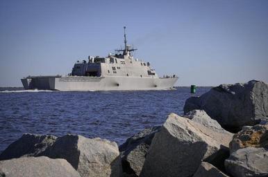 | Keywords: US Navy 100216-N-1522S-009 The littoral combat ship USS Freedom (LCS 1) departs Naval Station Mayport for its first operational deployment.jpg en MAYPORT Fla Feb 16 2010 The littoral combat ship USS Freedom LCS 1 departs Naval Station Mayport for its first operational deployment Freedom will conduct counter-illicit trafficking operations and theater security cooperation in the U S 4th Fleet area of responsibility U S Navy photo by Mass Communication Specialist 1st Class Leah Stiles/Released 2010-02-16 100216-N-1522S-009 Navy http //www navy mil/view_image asp id 81983 U S Navy photo by Mass Communication Specialist 1st Class Leah Stiles PD-USGov-Military-Navy General views of USS Freedom LCS-1 |