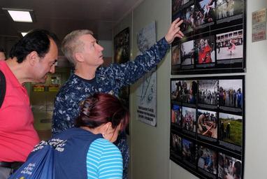 | Keywords: US Navy 100218-N-4995K-029 Capt. James Ware shares some of the ship's history with Ever Muillo and Luz Amanda Pulido aboard USNS Comfort (T-AH 20).jpg en HAITI Feb 18 2010 Capt James Ware commanding officer of the medical treatment facility aboard the Military Sealift Command hospital ship USNS Comfort T-AH 20 shares some of the ship's history with Ever Muillo Colombian director of social action and Luz Amanda Pulido Colombian director of risk management Comfort is working with U S agencies in coordination with the Government of Haiti the United Nations the international community and voluntary organizations to provide humanitarian assistance following the earthquake that devastated Port-au-Prince and the surrounding countryside Jan 12 U S Navy photo by Mass Communication Specialist 2nd Class Chelsea Kennedy/Released 2010-02-18 100218-N-4995K-029 Navy http //www navy mil/view_image asp id 82092 U S Navy photo by Mass Communication Specialist 2nd Class Chelsea Kennedy PD-USGov-Military-Navy Aboard USNS Comfort T-AH-20 United States Navy images from Haiti |