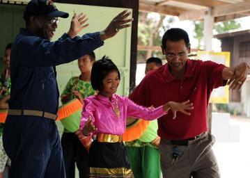 | Keywords: US Navy 100218-N-5538K-251 Chief Damage Controlman Troy C. Shinard participates in a traditional Rum Klong Yaw dance during a community service project.jpg en RAYONG PROVINCE Thailand Feb 18 2010 Chief Damage Controlman Troy C Shinard left assigned to the forward-deployed amphibious transport dock ship USS Denver LPD 9 participates in a traditional Rum Klong Yaw dance during a community service project at the Wat Somboonaram Elementary school Denver is part of the forward deployed Essex Amphibious Ready Group and is conducting spring patrol U S Navy photo by Mass Communication Specialist 3rd Class Casey H Kyhl/Released 2010-02-18 100218-N-5538K-251 Navy http //www navy mil/view_image asp id 82170 U S Navy photo by Mass Communication Specialist 3rd Class Casey H Kyhl PD-USGov-Military-Navy Aboard USS Denver LPD-9 |