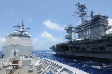 | Keywords: US Navy 100221-N-4275C-004 The guided-missile cruiser USS Bunker Hill (CG 52) takes on fuel from the Nimitz-class carrier USS Carl Vinson (CVN 70) during an underway replenishment near South America.jpg en ATLANTIC OCEAN Feb 21 2010 The guided-missile cruiser USS Bunker Hill CG 52 takes on fuel from the Nimitz-class carrier USS Carl Vinson CVN 70 during an underway replenishment near South America Both ships are participating in Operation Southern Seas U S Navy photo by Mass Communication Specialist 2nd Class Joel Carlson/Released 2010-02-21 100221-N-4275C-004 Navy http //www navy mil/view_image asp id 82218 U S Navy photo by Mass Communication Specialist 2nd Class Joel Carlson PD-USGov-Military-Navy Aboard USS Bunker Hill CG-52 |