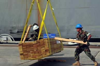 | Keywords: US Navy 100224-N-1441M-205 Sailors assigned to Navy Reserve Naval Cargo Handling Battalion 13 load lumber onto the Military Sealift Command crane ship SS Cornhusker State (T-ACS 6).jpg en GUANTANAMO BAY Cuba Feb 24 2010 Sailors assigned to Navy Reserve Naval Cargo Handling Battalion 13 load lumber onto the Military Sealift Command crane ship SS Cornhusker State T-ACS 6 for transport to Haiti Cornhusker State is providing logistical support as part of Operation Unified Response U S Navy photo by Mass Communication Specialist 2nd Class Marie A Montez/Released 2010-02-24 100224-N-1441M-205 Navy http //www navy mil/view_image asp id 82361 U S Navy photo by Mass Communication Specialist 2nd Class Marie A Montez PD-USGov-Military-Navy Construction at the Guantanamo Bay Naval Base SS Cornhusker State T-ACS-6 Water transport at the Guantanamo Bay Naval Base |