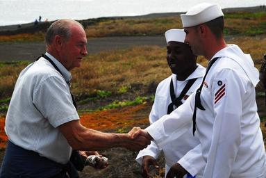 | Keywords: US Navy 100303-N-7843A-194 Sailors assigned to the amphibious dock landing ship USS Tortuga (LSD 49) talk with a veteran of the battle of Iwo Jima on the island of Iwo To, Japan.jpg en IWO TO Japan March 3 2010 Sailors assigned to the amphibious dock landing ship USS Tortuga LSD 49 talk with a veteran of the battle of Iwo Jima on the island of Iwo To Japan formerly known as Iwo Jima Military personnel and World War II veterans are commemorating the 65th anniversary of the Battle of Iwo Jima Tortuga arrived off the coast of Iwo To on Feb 28 to support the ceremony U S Navy photo by Lt Cmdr Denver Applehans/Released 2010-03-03 100303-N-7843A-194 Navy http //www navy mil/view_image asp id 82818 U S Navy photo by Lt Cmdr Denver Applehans PD-USGov-Military-Navy Aboard USS Tortuga LSD-46 Images from US Navy location Iwo Jima Japan |