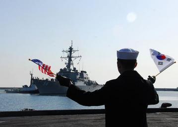 | Keywords: US Navy 100319-N-9573A-005 A Republic of Korea sailor waves the American flag and Republic of Korea flag as the guided-missile destroyer USS John S. McCain (DDG 56) arrives in Donghae.jpg en DONGHAE Republic of Korea March 19 2010 A Republic of Korea sailor waves the American flag and Republic of Korea flag as the guided-missile destroyer USS John S McCain DDG 56 arrives in Donghae John S McCain is scheduled to train with the Republic of Korea navy as part of Foal Eagle 2010 John S McCain is one of seven ships assigned to Destroyer Squadron DESRON 15 and is forward-deployed to Yokosuka Japan U S Navy photo by Mass Communication Specialist 1st Class Bobbie G Attaway/Released 2010-03-19 100319-N-9573A-005 Navy http //www navy mil/view_image asp id 83419 U S Navy photo by Mass Communication Specialist 1st Class Bobbie G Attaway PD-USGov-Military-Navy Aboard USS John S McCain DDG-56 Republic of Korea Navy |