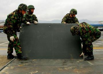| Keywords: US Navy 100325-N-9573A-009 Seabees place bolted sections together during a rapid runway repair exercise.jpg en CHINHAE Republic of Korea March 25 2010 Seabees assigned to Naval Mobile Construction Battalion NMCB 1 and Republic of Korea Seabees place bolted sections together during a rapid runway repair exercise The exercise consisted of filling and covering a simulated bomb crater during a timed evolution U S Navy photo by Mass Communication Specialist 1st Class Bobbie G Attaway/Released 2010-03-25 100325-N-9573A-009 Navy http //www navy mil/view_image asp id 83616 U S Navy photo by Mass Communication Specialist 1st Class Bobbie G Attaway PD-USGov-Military-Navy Images from US Navy location Jinhae South Korea |