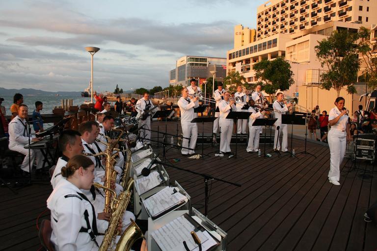| Keywords: US Navy 100405-N-9575C-010 Far East Edition, serenade the locals and tourists at a sunset concert at Segama Water Front, Kota Kinabalu.jpg en KOTA KINABALU Malaysia April 5 2010 Chief Musician Lusliada Barbosa and the U S 7th Fleet Band Far East Edition serenade the locals and tourists at a sunset concert at Segama Water Front Kota Kinabalu Far East Edition is assigned to the amphibious command ship USS Blue Ridge LCC 19 U S Navy photo by Musician 1st Class Shin Takao/Released 2010-04-05 100405-N-9575C-010 Navy http //www navy mil/view_image asp id 84098 U S Navy photo by Musician 1st Class Shin Takao PD-USGov-Military-Navy Aboard USS Blue Ridge LCC-19 |
