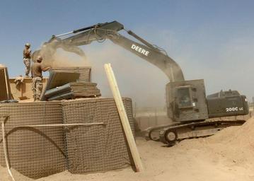 | Keywords: US Navy 100409-N-8816D-156 Seabees from Naval Mobile Construction Battalion (NMCB) 133, Detachment Six use an excavator and shovels.jpg en TARNAK Afghanistan April 9 2010 Seabees from Naval Mobile Construction Battalion NMCB 133 Detachment Six use an excavator and shovels to fill Hesco barriers with sand during the construction of a security wall in Tarnak Afghanistan NMCB-133 is in the U S Central Command area of responsibility U S Navy photo by Chief Mass Communication Specialist Ryan C Delcore/Released 2010-04-09 100409-N-8816D-156 Navy http //www navy mil/view_image asp id 84537 U S Navy photo by Chief Mass Communication Specialist Ryan C Delcore PD-USGov-Military-Navy Images from US Navy location TARNAK Afghanistan Hesco bastions Tracked 360 degree diggers John Deere excavators Naval Mobile Construction Battalion 133 |