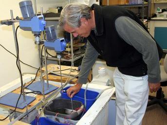 | Keywords: US Navy 100414-N-0000F-001 Bart Chadwick, Head of the Environmental Sciences Branch Space at the Naval Warfare Systems Center (SPAWAR).jpg en SAN DIEGO April 14 2010 Bart Chadwick Head of the Environmental Sciences Branch Space at the Naval Warfare Systems Center SPAWAR checks conditions in laboratory microbial fuel cells or MFCs The fuel cells have the potential to revolutionize naval energy use by converting decomposed marine organisms into electrical energy offering a clean efficient and reliable alternative to batteries and other environmentally harmful fuels U S Navy photo/Released 2010-04-14 100414-N-0000F-001 Navy http //www navy mil/view_image asp id 84433 U S Navy photo PD-USGov-Military-Navy Space and Naval Warfare Systems Center Pacific |