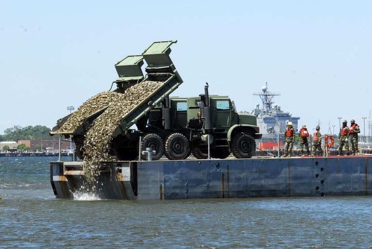 Keywords: US Navy 100428-N-3154P-149 Sailors assigned to Amphibious Construction Battalion (ACB) 2, use heavy machinery to load oyster shells for two new artificial oyster reef sites in the mud flats of Little Creek Cove.jpg en VIRGINIA BEACH Va April 28 2010 Sailors assigned to Amphibious Construction Battalion ACB 2 dump oyster shells into the mud flats of Little Creek Cove to establish two new artificial oyster reefs The oysters are the naturally occurring Eastern oyster Crassostrea virginica which can filter 50 gallons of water individually each day U S Navy photo by Mass Communication Specialist Seaman Scott Pittman/Released 2010-04-28 100428-N-3154P-149 Navy http //www navy mil/view_image asp id 84820 U S Navy photo by Mass Communication Specialist Seaman Scott Pittman PD-USGov-Military-Navy Images from US Navy location Virginia Beach Va Dump trucks in the United States Virginia Coast Amphibious Construction Battalion 2 Unidentified Mollusca Oshkosh MTVR Dump rigid trucks Military dump trucks |
